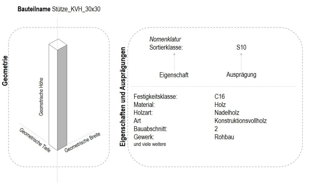 Denkt man dieses Modell zu Ende, dann bedarf es eines Standards für Informationsmodelle. Dieser Standard, nennen wir ihn einen Industriestandard, muss verbindlich regeln, wie Bauteile in der Stufe 1 (WAS gebaut wird) beschrieben werden, ohne wenn und aber. Es dürfen in Projekten keine individuellen Bezeichnungen für Betonfestigkeitsklassen oder Steinformate vorhanden sein. Oder für irgendwelche anderen Informationen.